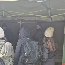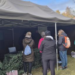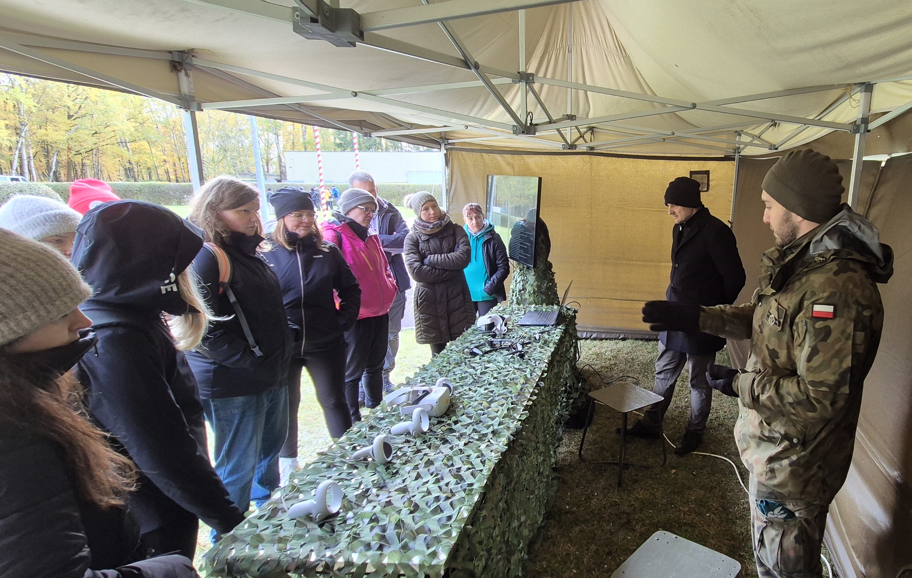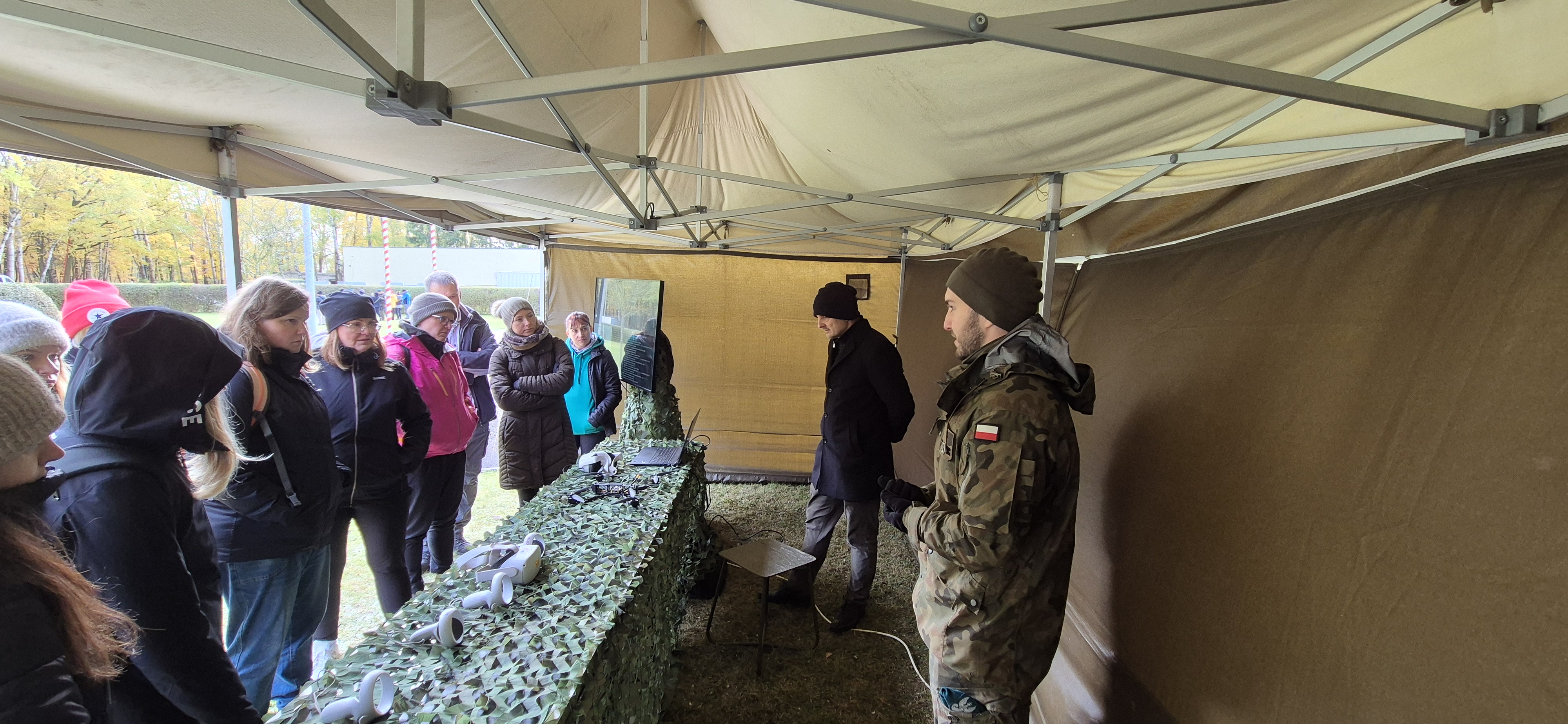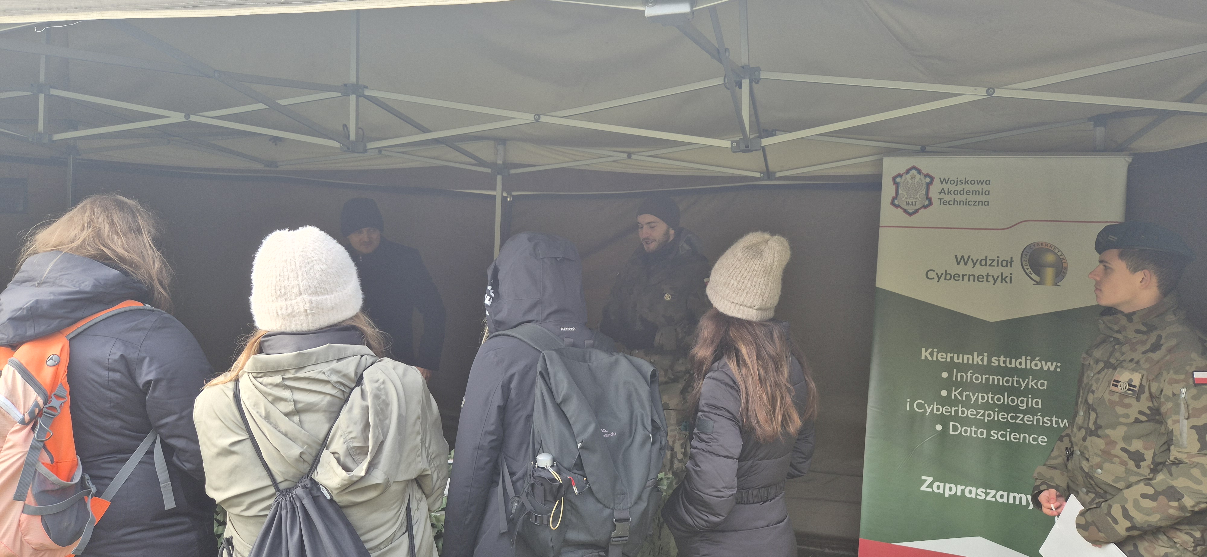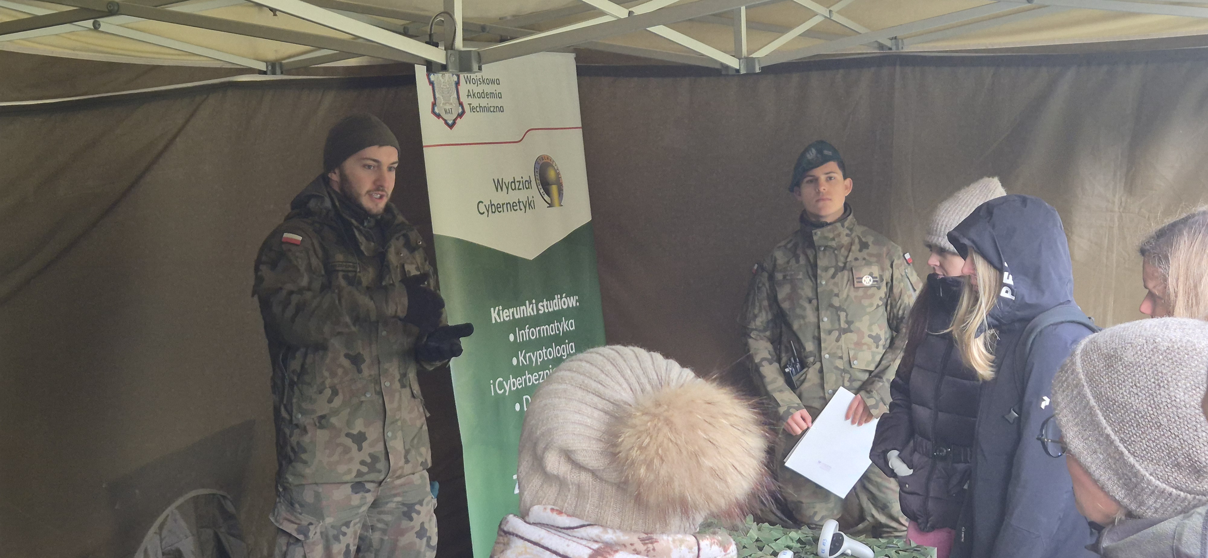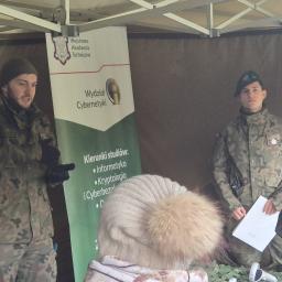 Na stanowisku prowadzonym przez dr. inż. Pawła Moszczyńskiego oraz podchorążych Antoniego Przeperskiego i Mateusza Pyśka uczestnicy dowiedzieli się, na czym polega rola Wojsk Obrony Cyberprzestrzeni w Siłach Zbrojnych RP, jakie kompetencje są dziś kluczowe (IT, cyberbezpieczeństwo, kryptologia, AI) dla Cyber Żołnierzy oraz jak każdy obywatel może wzmacniać narodową odporność przez podstawową cyberhigienę i krytyczną weryfikację informacji.