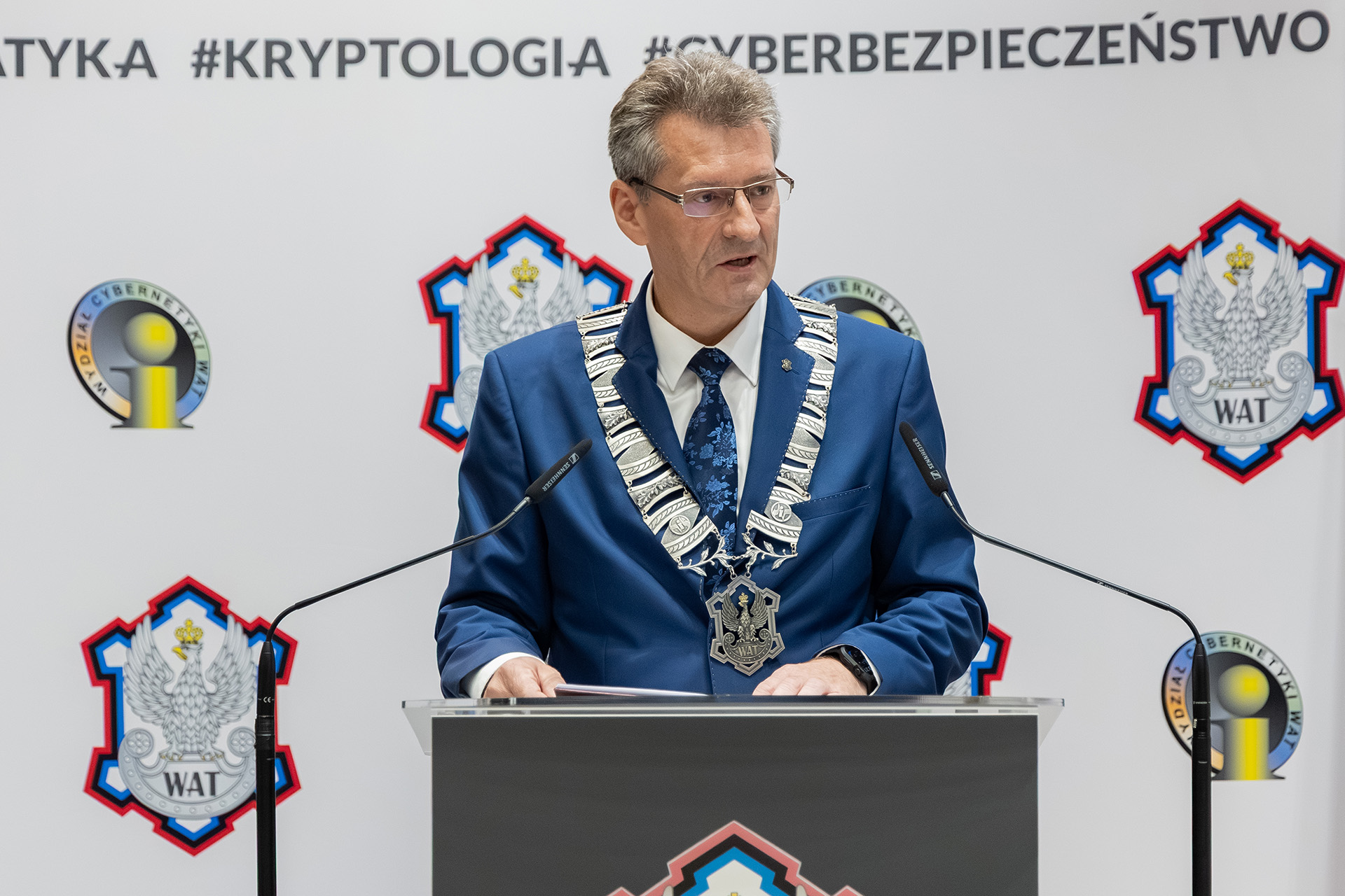 Uroczystość poprowadził dziekan Wydziału Cybernetyki, dr hab. inż. Zbigniew Tarapata, prof. WAT, który z serdecznością powitał zgromadzonych gości, kadrę akademicką i pracowników administracji. Szczególne słowa skierował do bohaterów tego dnia – studentów pierwszego roku, którzy właśnie rozpoczęli swoją przygodę z nauką w murach uczelni.