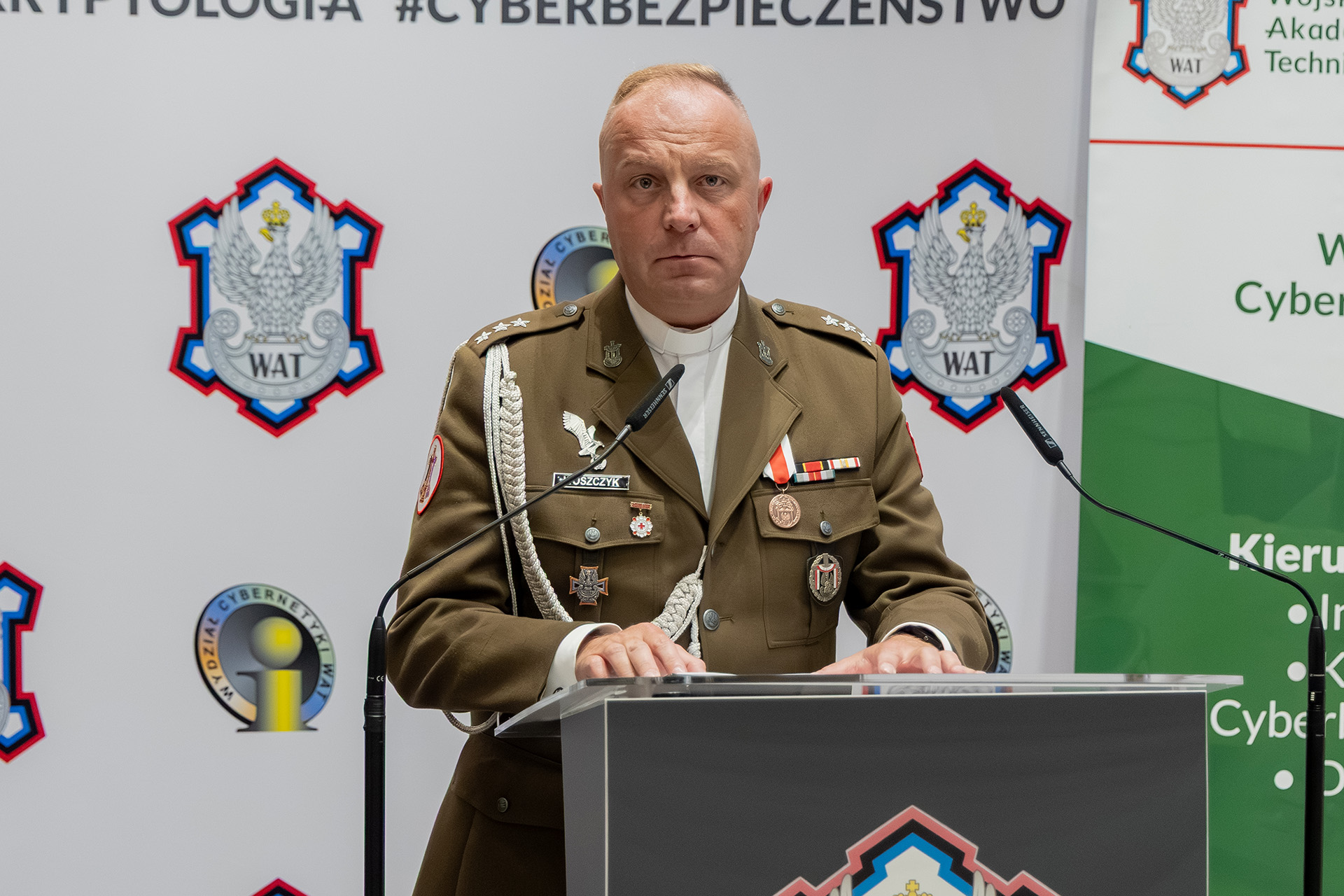 Meldunek Rektorowi-Komendantowi WAT, gen. bryg. prof. dr. hab. inż. Przemysławowi Wachulakowi, który zaszczycił swoją obecnością Wydział Cybernetyki podczas Inauguracji, złożył Zastępca Dziekana Wydziału Cybernetyki, płk dr inż. Rafał Kasprzyk.