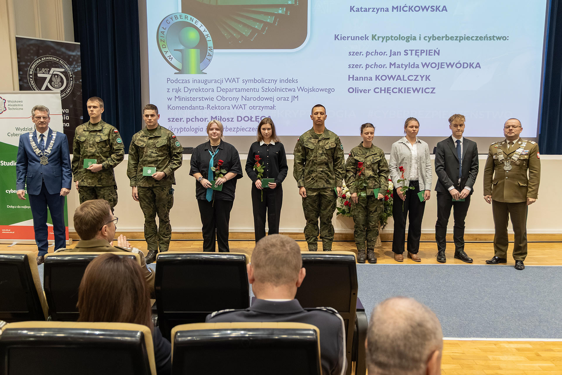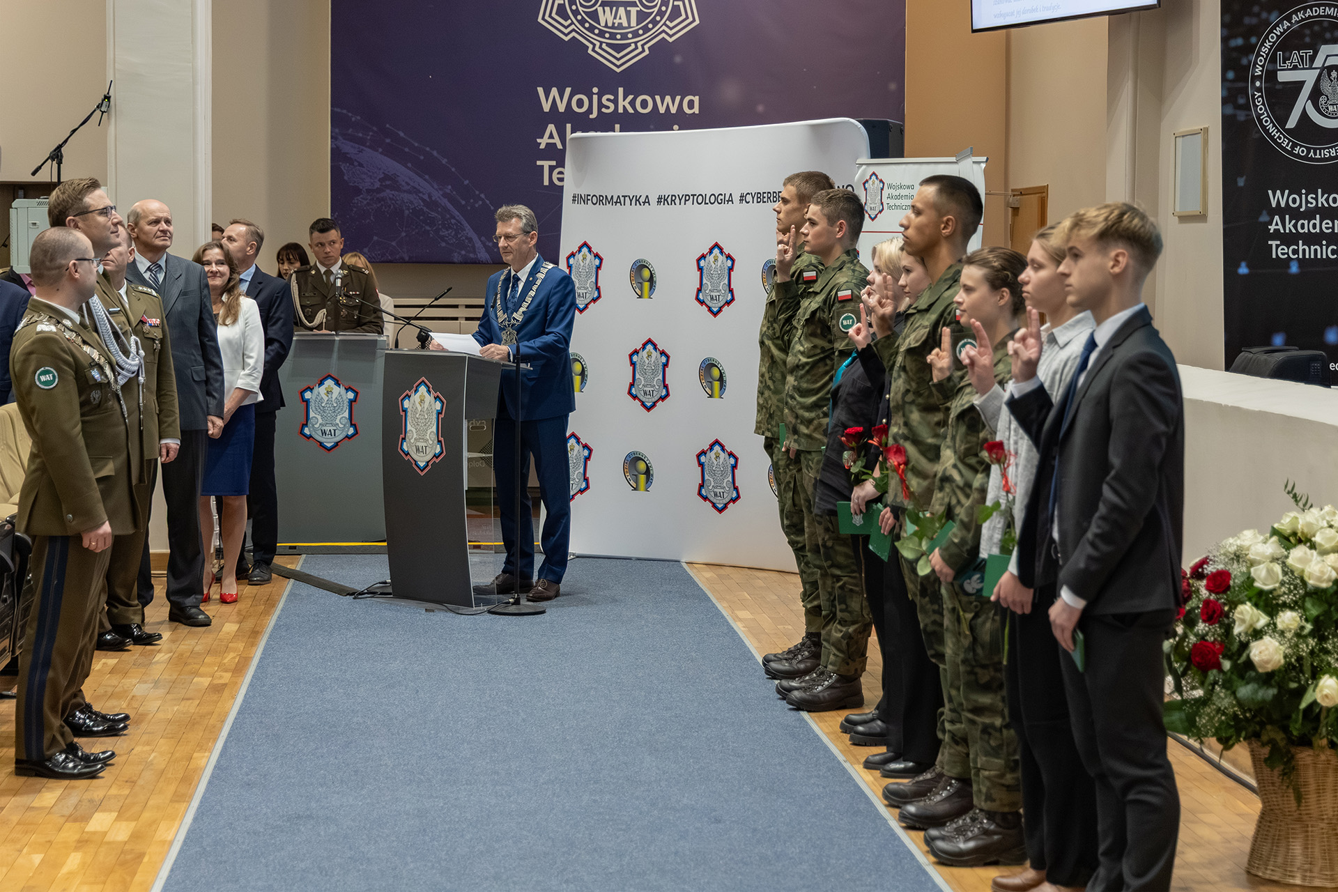 Momentem szczególnym uroczystości było złożenie przez studentów pierwszego roku ślubowania, w którym przyrzekli sumiennie zdobywać wiedzę, przestrzegać zasad wspólnoty akademickiej oraz dbać o honor i dobre imię uczelni. Podczas inauguracji WAT symboliczny indeks z rąk Podsekretarza Stanu w Ministerstwie Obrony Narodowej oraz JM Komendanta-Rektora WAT otrzymał: szer. pchor. Miłosz Dołęga , student jednolitych studiów magisterskich na kierunku kryptologia i cyberbezpieczeństwo. Podczas inauguracji WCY symboliczne indeksy z rąk dziekana odebrali studenci z kierunku Informatyka: szer. pchor. Wiktor Leśniewicz, szer. pchor. Robert Chłopek, Maria Gałczyńska, Katarzyna Mićkowska, a z kierunku Kryptologia i cyberbezpieczeństwo: szer. pchor. Jan Stępień, szer. pchor. Matylda Wojewódka, Hanna Kowalczyk, Oliver Chęckiewicz.
