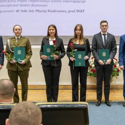 W Konkursie Rektora na najlepsze prace dyplomowe, wyróżnienie otrzymał mgr inż. Aleksander Wiącek za pracę „Analiza i modelowanie wybranych aspektów sieci warstwy drugiej Ethereum z zastosowaniem technik uczenia maszynowego” napisaną pod opieką dr. inż. Kamila Kaczyńskiego, mgr inż. Maciej Kawka za pracę „System agentów sztucznej inteligencji wspomagający generowanie i testowanie kodu źródłowego” napisaną pod opieką dr. inż. Dariusza Pierzchały, prof. WAT, oraz inż. Jakub Zaroda za pracę „Znalezienie efektywnej liczby komponentów Butterfly Unit w potokowej realizacji transformaty NTT w strukturach programowalnych FPGA”, gdzie promotorem była dr inż. Elżbieta Burek.