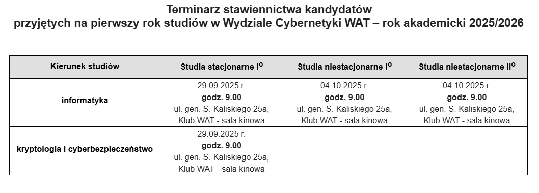 W okresie od 07.07.2025r. do 12.09.2025r. dziekanat będzie czynny dla studentów od poniedziałku do piątku w godzinach 7:45 - 09:00 oraz 11:00 - 15:20 .