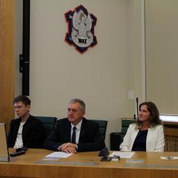Głos zabrała też prodziekan ds. studenckich Wydziału Cybernetyki, dr Joanna Piasecka, prof. WAT. W przystępny sposób opowiedziała, jak wygląda współcześnie kształcenie i praca na Wydziale. Podkreśliła wysoką jakość edukacji jaką oferuje WCY, co potwierdza duża liczba kandydatów na studia i fakt, że oba kierunki studiów prowadzone przez WCY posiadają certyfikaty „Doskonałości kształcenia” przyznane przez Polską Komisję Akredytacyjną. Prodziekan wymieniła również liczne inicjatywy studenckie i największe sukcesy studentów, w tym udział w konkursach programistycznych i hackathonach. Na koniec zaznaczyła, że Wydział konsekwentnie się zmienia, ale nie traci tego co najważniejsze: wyjątkowej atmosfery, solidnego przekazywania wiedzy i poczucia misji.