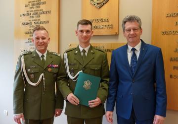 Wyróżnienie wręczył dziekan Wydziału Cybernetyki dr. hab. inż. Zbigniewa Tarapatę, prof. WAT, oraz zastępca dziekana płk dr. inż. Rafał Kasprzyk. Jest to wyraz uznania dla postawy, która łączy profesjonalizm z empatią i odpowiedzialnością społeczną.